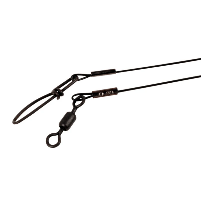 Zwarte leader met zachte nylon coating en hoogwaardige crosslock en wartels, 2 stuks.