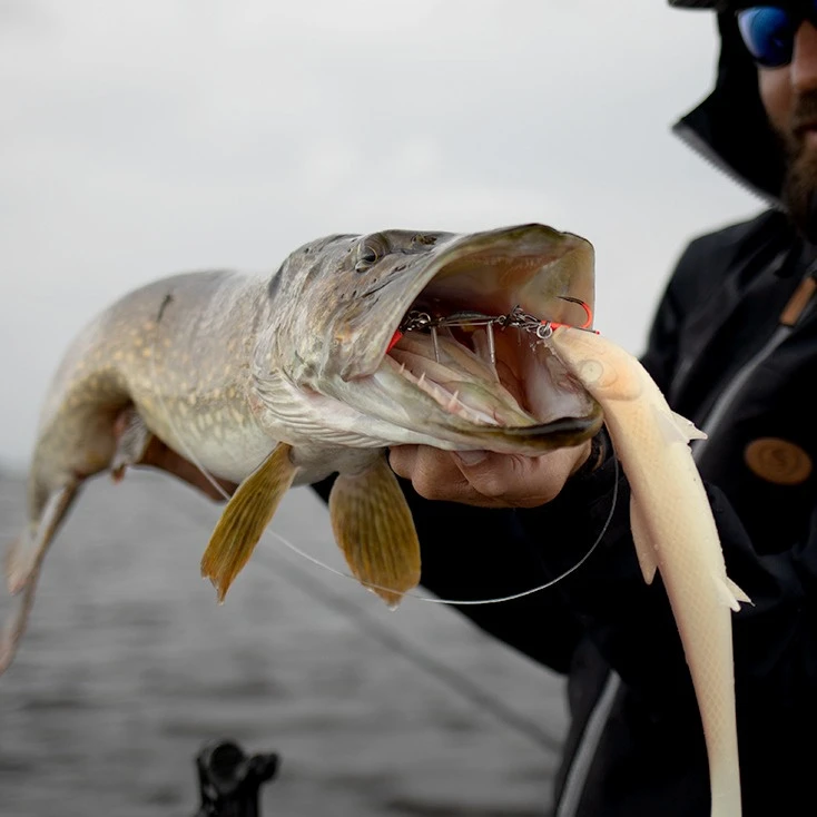 Met opmerkelijke verbeteringen ten opzichte van een standaard stinger rig, heeft het een snel en intuïtief loodvervangingssysteem om het zinkend patroon van uw aas aan te passen en met plastic beklede pinnen om de rig perfect aan het aaslichaam te laten hechten.