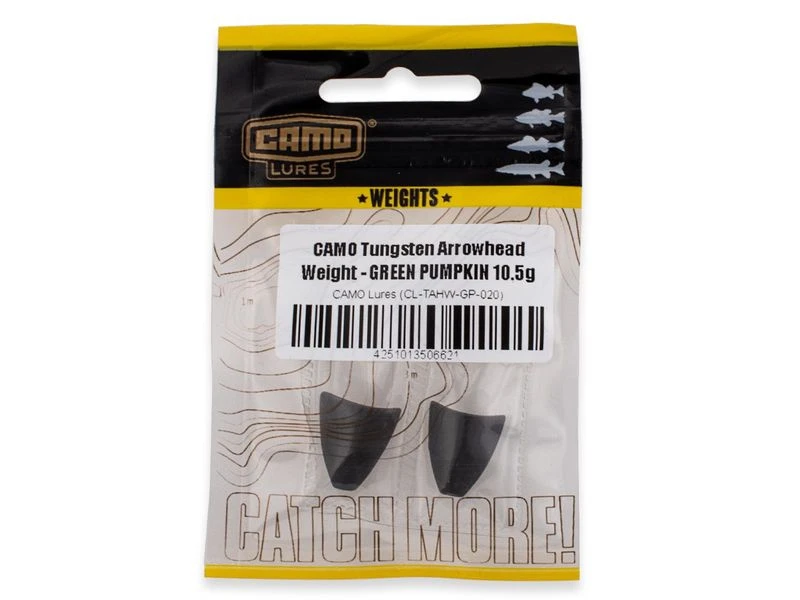 De Camo Tungsten Arrowhead Weights hebben een vorm die lijkt op een pijlpunt. Dit ontwerp biedt een betere pasvorm voor craws en creature baits met een plat, breed lichaam en stabiliseert de beweging.