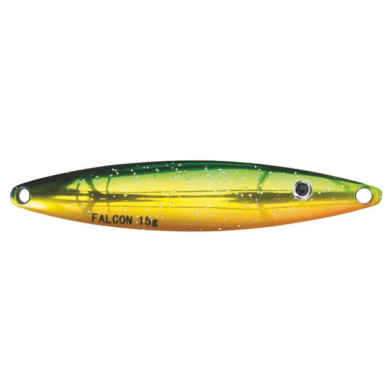 Het is sterk gebogen, wat de lepeltrekker een unieke en aantrekkelijke gang in het water geeft. Natuurlijk wordt Falcon geleverd met ringen, paai, en haak, klaar om mee te vissen. Falcon wordt vervaardigd in een volautomatische stans- en buigmachine, wat een zeer hoge en gelijkmatige kwaliteit garandeert. Falcon Zeeforel sleepnet is gemaakt van messing.