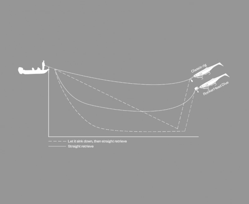 De vorm van de Action Lip laat het aas ook duiken tijdens het binnenhalen en houdt het aas langer beneden, waardoor het ideaal is voor diepere visserijen. Het ontwerp stelt u in staat om te experimenteren en het gewicht dat aan de RockerHead is bevestigd te veranderen, of het gewicht te verwijderen voor langzaam ondiep vissen.
