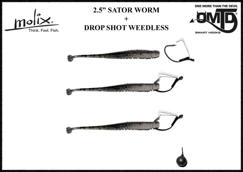 De Molix 2,5″ Sator Worm is voorzien van een geribbeld lichaam dat taps toeloopt naar een ultradunne staart en heeft ook een unieke bolvormige luchtzak aan het einde van de staart waardoor hij verleidelijk in het water blijft drijven en golven.