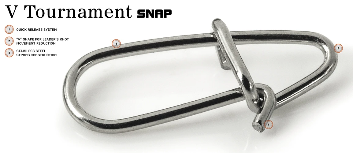 Deze gevormde en afgeronde snap geeft maximale beweging aan het kunstaas. Het “V” profiel vermindert de beweging van de knoop van de leader voor een nauwkeurigere reactie van het kunstaas tijdens het ophalen.