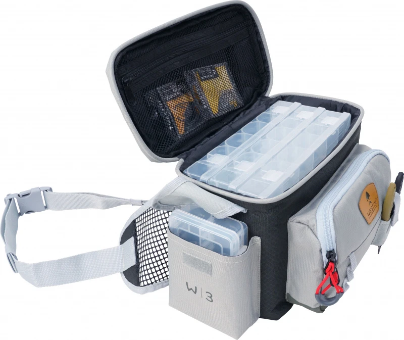 De Westin W3 Waist Pack (4 dozen) Grey/Black Large bevat kunstaasdozen en het hoofdvak heeft een snel en gemakkelijk magnetisch openingssysteem. Deze tas is voorzien van verschillende vakken, een klittenband gereedschapsriem en een groot gaasvak in de tas. Plaats hem om je middel en houd al je visspullen dicht bij je!