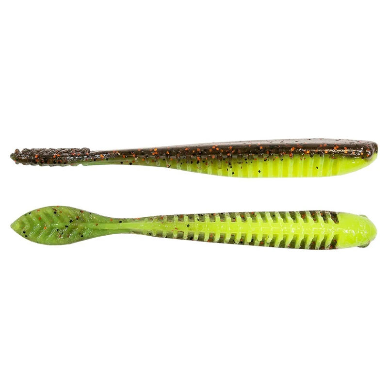Trick ShotZ hebben soepele, geribbelde lichamen en spadevormige staarten die ultra levensechte actie produceren met weinig hengelbeweging, en zijn geïmpregneerd met zout voor smaak en textuur. Hun ElaZtech samenstelling bootst nauwkeurig een verscheidenheid aan voedsel na, waaronder shad, bloedzuigers, grondels en minnows, en zorgt voor een uitzonderlijke weerstand tegen scheuren bij het haken aan de neus en vergemakkelijkt een meer natuurlijke, staart omhoog positie die niet naar de bodem zinkt bij slappe lijn zoals andere concurrerende producten.